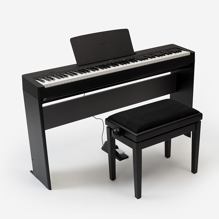 Voeg een onderstel en stoel naar keuze toe aan je piano.